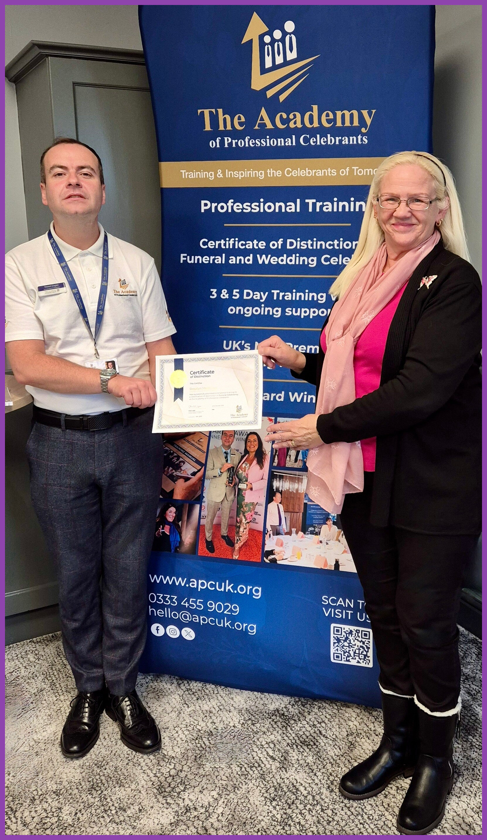 I'm delighted to announce that I have successfully completed my training with the Academy of Professional Celebrants.